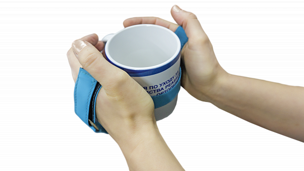 Приспособление необходимо для людей с нарушениями функций верхних конечностей благодаря которому человек держит кружку уверенно, минимизируя риск пролить ее содержимое.