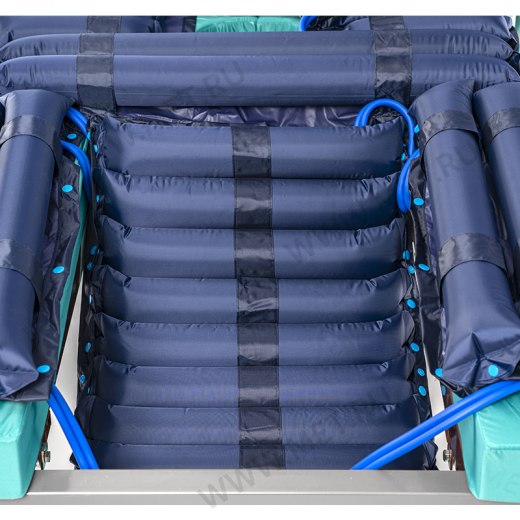 Регулировка задаваемого давления осуществляется в зависимости от массы пациента. Противопролежневый матрас обладает эффектом непрерывного массажа, предотвращает застои и не дает развиваться некрозу мягких тканей лежачего пациента.