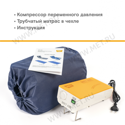 Компрессор можно разместить на полу или спинке кровати, облегчая к нему доступ и позволяя максимально эргономично использовать пространства помещения. Противопролежневый матрас MET AIR WC-200 является простым и неприхотливым решением в вопросе профилактики пролежней, а управление данной противопролежневой системой осуществляется буквально одной кнопкой.