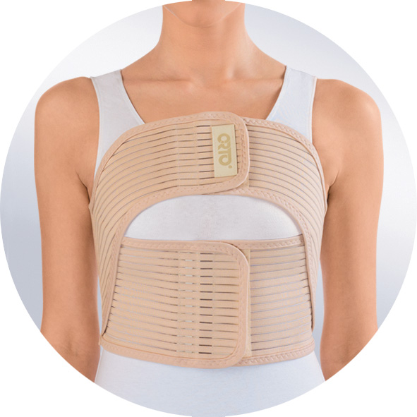 Бандаж разъемный облегченный на грудную клетку для женщин, с основой анатомической формы из эластичного полотна. Усилен металлическими планшетами. Фиксация бандажа осуществляется с помощью дискретных застежек «велкро».