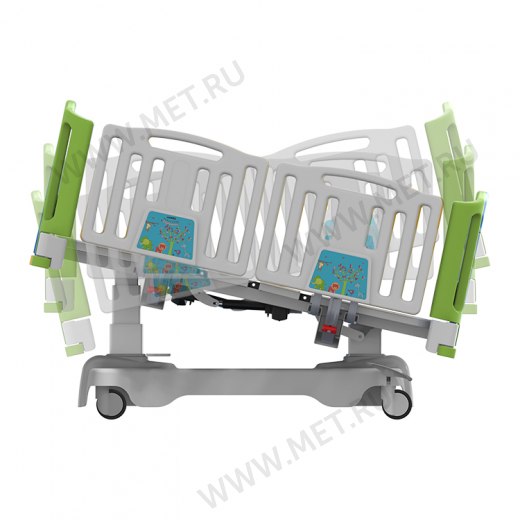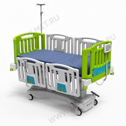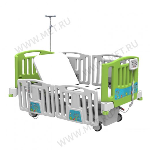 Современная функциональная кровать для педиатрических отделений и реанимации, с основанием на телескопических колоннах.
