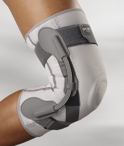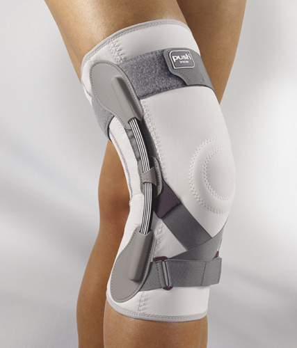 Ортез Push med Knee Brace обеспечивает сильную степень фиксации и защиты коленного сустава. Ортез стабилизирует коленный сустав в медиоально-латеральном направлении. Стабилизация достигается благодаря двум безосевым пластинчатым пружинным рессорам, уникальным образом повторяющим естественные движения колена. Силиконовая вставка в области коленной чашечки оказывает дополнительно фиксирующее воздействие.