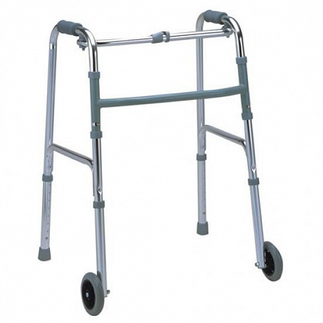 Опорные поручни ходунков выполнены из анодированного алюминия и не подвергается коррозии, соединяющая рама — из стали с полимерным покрытием. Передние опоры оснащены колесами для облегчения передвижения и большей мобильности. Ходунки просто складываются и не занимают много места, имеют 8 положений регулировки высоты с шагом в 2,5 см. Мягкие накладки на поручнях ходунков не дают рукам соскользнуть; резиновые наконечники, расположенные на опорах ходунков, предохраняют от скольжения по твердым поверхностям.