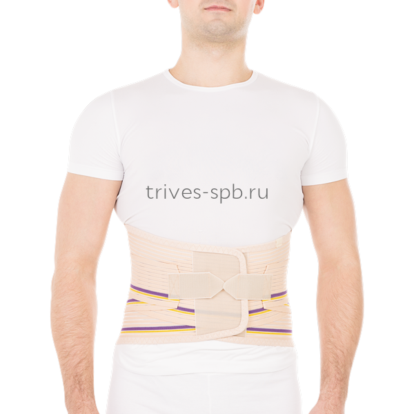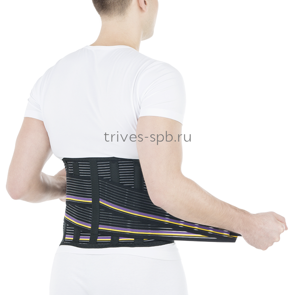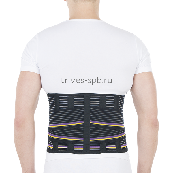в корсете установлены четыре моделируемых жестких ребра, используемых в острой фазе заболевания и обеспечивающих сильную фиксацию пояснично-крестцового отдела позвоночника. В комплекте предусмотрены четыре упругих ребра жесткости, используемых после окончания острой фазы заболевания и обеспечивающих умеренную фиксацию пояснично-крестцового отдела позвоночника. Дополнительная двойная стяжка позволяет оптимально расположить корсет, улучшить прилегание изделия и индивидуально отрегулировать фиксирующие возможности корсета. Высота корсета 25 см.