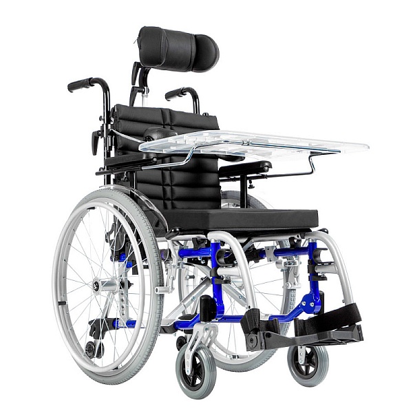 Большие ведущие колеса с приводными обручами.Ручной стояночный тормоз.Задние колеса, регулируемые по горизонтали.Передние колеса, регулируемые по вертикали.Съемные ручки для сопровождающего лица.Подлокотники, регулируемые по высоте.Подножки, регулируемые по длине.Сиденье, регулируемое по глубине.Задние колеса, регулируемые по вертикали.Усиленная конструкция рамы грузоподъемностью 80 кг.Подголовник, регулируемый по вертикали, горизонтали, углу наклона и по охвату головы.Боковые поддержки, регулируемые по вертикали, горизонтали и углу наклона.Съемный столик.Спинка, регулируемая по углу наклона.2-х точечный тазовый ремень.Опоры для стоп, регулируемые по углу наклона.Ремни натяжения спинки.Ремни натяжения сиденья.Распорка спинки.Ремни для стоп.Откидные опоры для стоп.