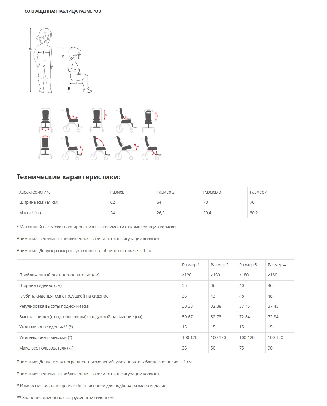 Подставка для ног с 2-точечными ремнями стабилизации ног.Колеса с протектором для бездорожья гарантируют высочайший уровень комфорта даже на труднопроходимой местности.Откидывающаяся спинка.Обивка съемная, позволяет легко чистить и поддерживать гигиену.