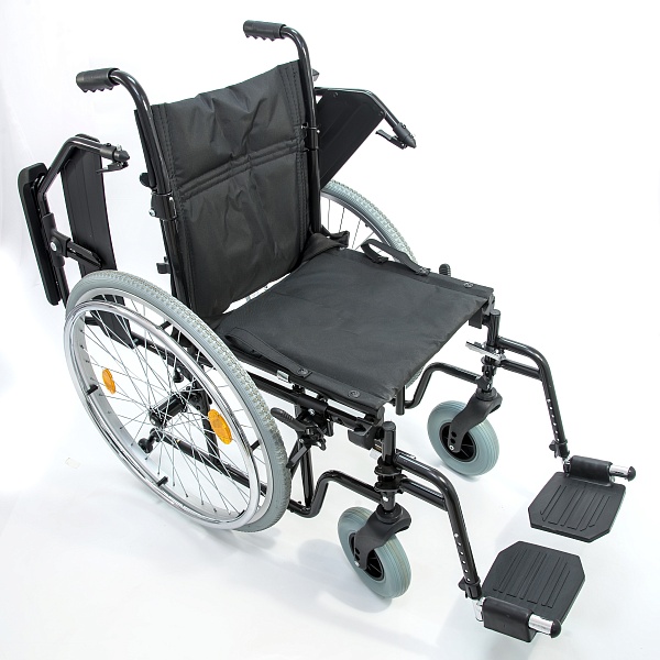 Съемные, регулируемые по высоте подножки.Откидные, съемные подлокотники с регулировкой высоты.Цельнолитые/пневматические быстросъемные задние колеса.Быстросъемные передние колеса.Полимерное покрытие.Складная спинка.Антиопрокидыватели.Ремень безопасности.Стояночный тормоз.