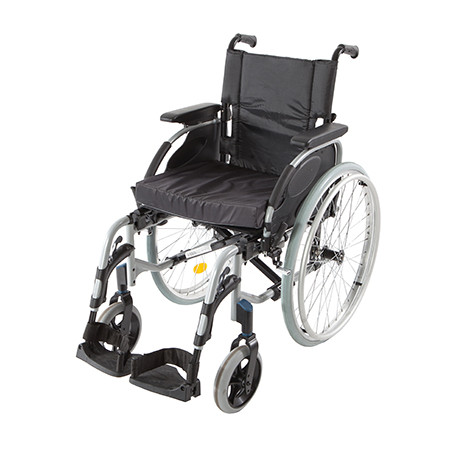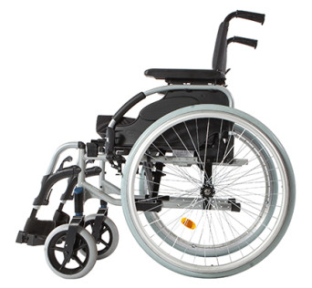 Кресло-коляска подходит как для дома, так и для улицы. Рама выдерживает нагрузку до 125 кг. Вес коляски при этом составляет всего 16,5 кг. Раздвижные опоры для ног облегчают процесс пересаживания пользователя. Подлокотники можно убрать для удобства перемещений, также они регулируются по высоте.