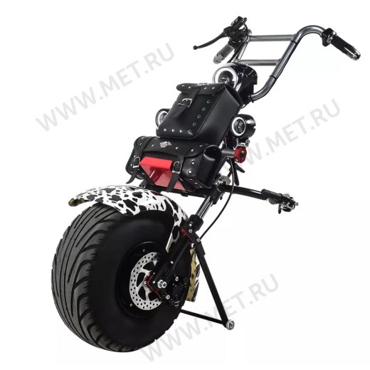 Самый комфортный за счёт наиболее широкой покрышки и элегантный за счёт мотоциклетного руля чопперного типа вариант среди наших электроприводов. 1500W мощное и приёмистое мотор-колесо и самый большой запас хода за счёт вместительного 16 А/ч аккумулятора. Эластомерная аммортизационная вилка и оптический комплект полноценного ТС.