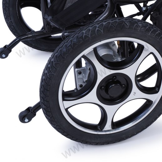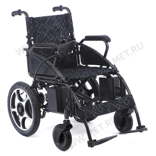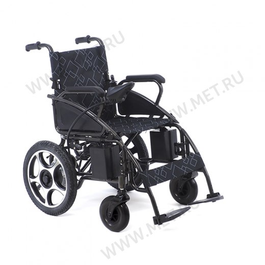 Электрическое кресло-коляска с электроприводом и откидными подлокотникам..Кресло-коляска электрическая MET START 610 оборудовано задним приводом, реализованным в виде двух независимых электромоторов на безугловом редукторном соединении с ведущими колёсами. Такой тип электропривода наиболее надёжен и прост в обслуживании, так как достигается максимальная простота механических соединений. Управление, осуществляемое с помощью электромагнитного джойстика, интуитивно понятно и позволяет точное маневрирование в самых ограниченных пространствах. Откидные подлокотники обеспечивают лёгкое размещение в кресле и высадку из него.