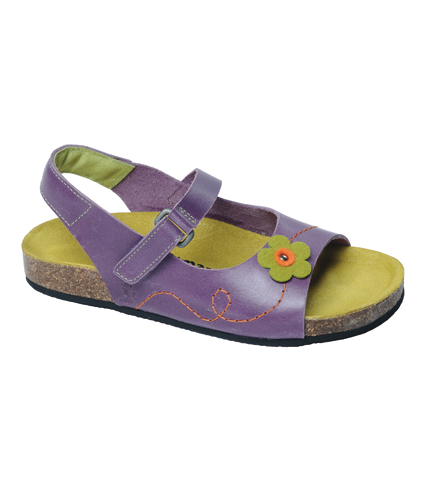 Оборудованы фиксирующим ремешком на пятке. Стелька несъемная, выполнена из композитного материала на основе натуральной пробки (крошка коры пробкового дуба), отличается гибкостью и прочностью. Верх обуви выполнен из натуральной кожи, поверхность стельки выполнена из мягкой велюровой кожи, не вызывает аллергии. Легкая рифленая подошва из полиуретана не скользит, обеспечивает дополнительную безопасность при ходьбе.
