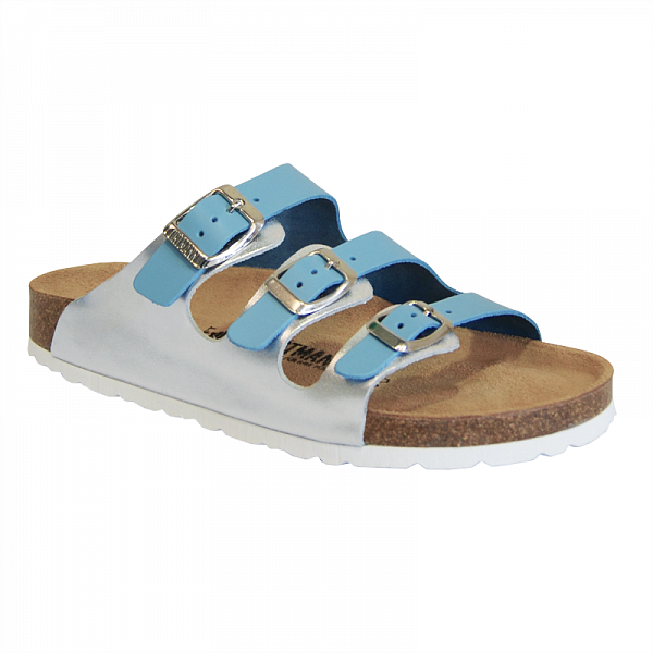 Элементы пробковой стельки:-опора и разделитель для пальцев из натуральной коры дуба, покрыта мягкой велюровой кожей- удерживает пальцы стопы в нормальном положении при ходьбе;-опора переднего отдела стопы - поддерживает естественный свод стопы;-опора наружного края стопы-обеспечивает правильное положение стопы при ходьбе, уменьшает нагрузку на мышцы ног;-специальное углубление под пятку-уменьшает нагрузку на голеностопный сустав.натуральная мягкая кожа (верх и все элементы верха обуви, прилегающие к коже стоп) - обеспечивает высокую износостойкость, мягкость и комфорт;3 регулятора полноты надежно фиксируют обувь на ноге.Износостойкая нескользящая подошва - обеспечивает максимальную защиту и безопасность при ходьбе.