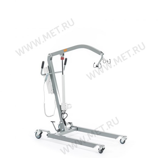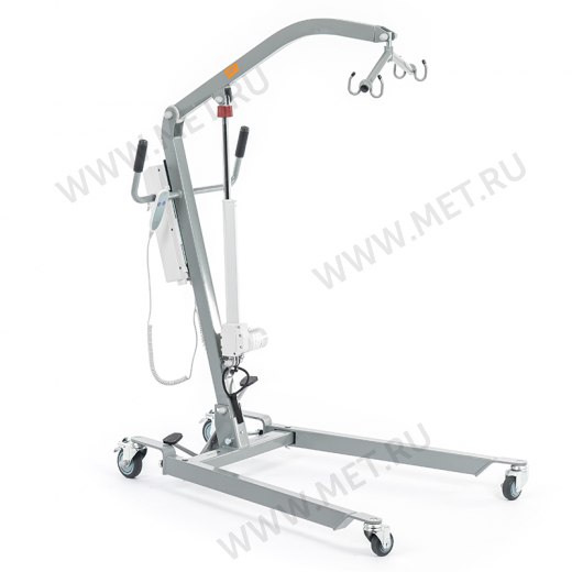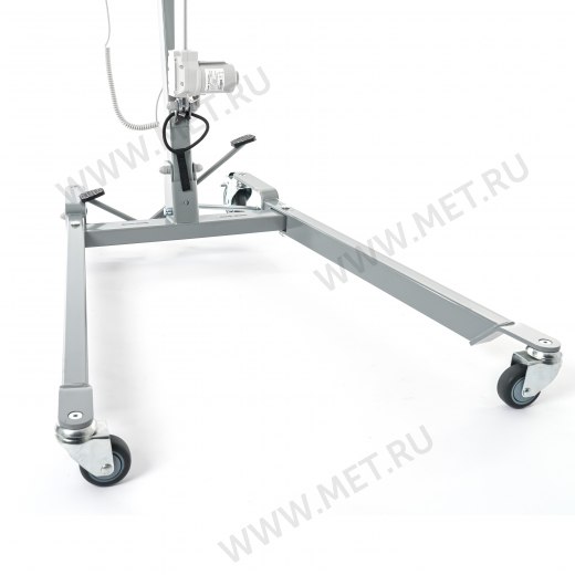 Электрический прикроватный подъёмник, выполненный на металлической раме, складывающейся для удобства хранения и транспортировки. Раздвижные передние колёсные опоры высотой всего 115 мм для максимальной устойчивости и возможности заезда под низкую мебель.