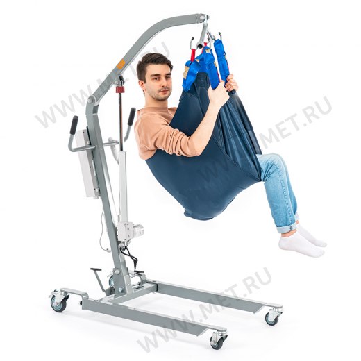 Стрела, а так же универсальный подвес, рассчитанный на среднюю комплекцию пользователя уже в комплекте поставки. Почти бесшумный электропривод, сообщающий подъёмнику более чем солидную грузоподъёмность в 150 кг. Всё это дополнено кнопкой аварийной остановки и возможностью спуска на аварийном источнике питания.