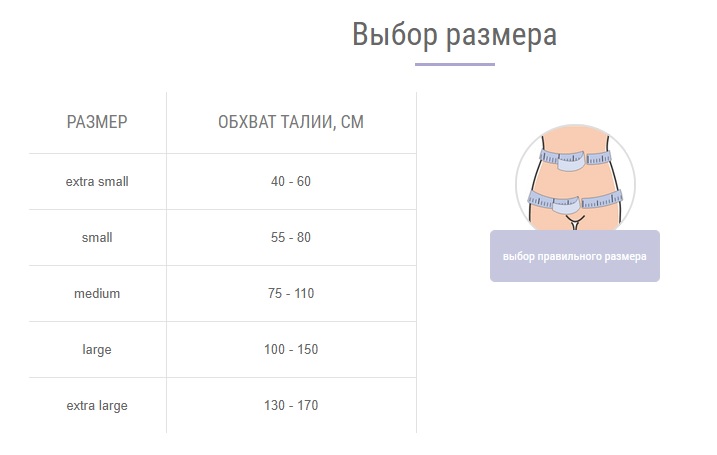 Размер подбирается по обхвату талии: