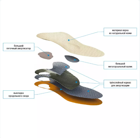 Доказанная лечебная эффективность: 92,7% пациенток полностью удовлетворены лечением.Особый 3х-слойный каркас и крупный пяточный амортизатор: создают оптимальную амортизацию и поддержку, что важно людям с заболеваниями суставов нижних конечностей и при увеличенном весе.Специальные ортопедические элементы при комбинированном плоскостопии: большой валик средней жесткости для поддержания поперечного свода, выкладки внутреннего и внешнего продольных сводов.Покрытие из натуральной кожи с перфорацией: обеспечивает комфорт ногам в течение длительного времени.