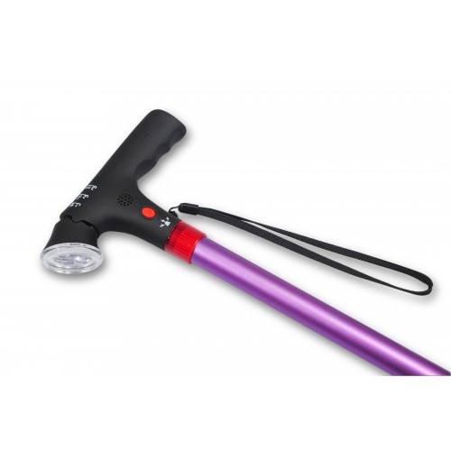 Трость с регулируемым фонариком. Пластиковая рукоятка с выемками под пальцы для лучшего удержания трости в руке, оборудована фонарем, наклоняемым под различным углом, сигнальной лампой и аварийным звуковым сигналом. Трость имеет 3 режима эксплуатации, которые выбираются одной кнопкой, расположенной вверху рукоятки. Кнопка аварийного сигнала, расположенная сбоку, внизу рукоятки, включает сигнальную лампу и звуковой сигнал о помощи.