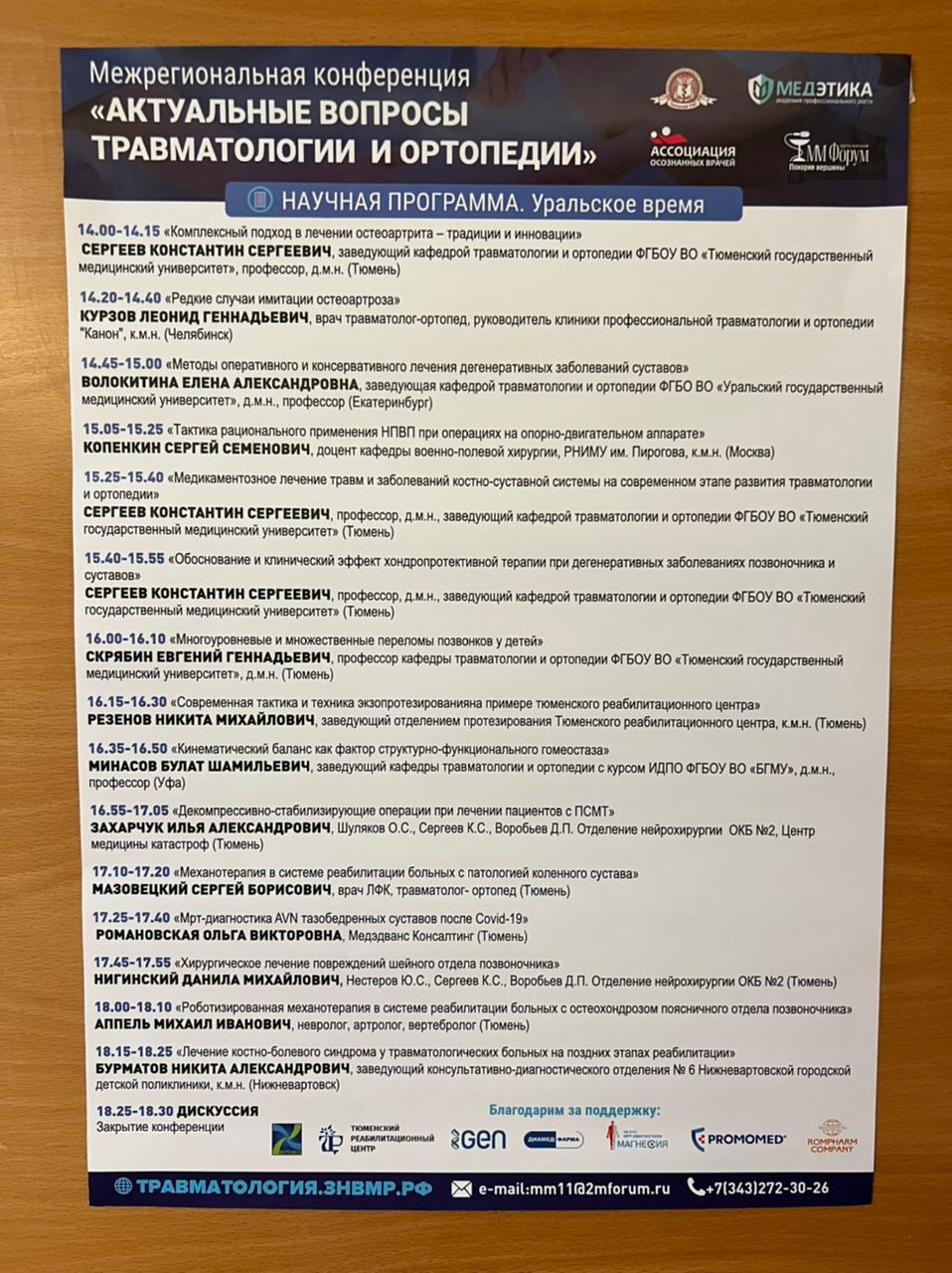 20 апреля в Тюмени состоялась Межрегиональная конференция “Актуальные вопросы травматологии и ортопедии”.