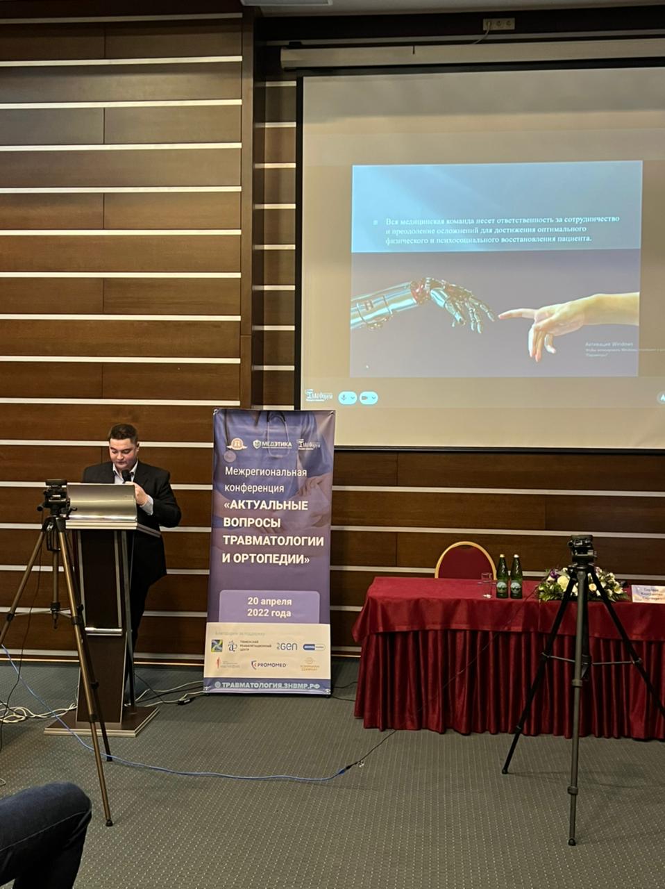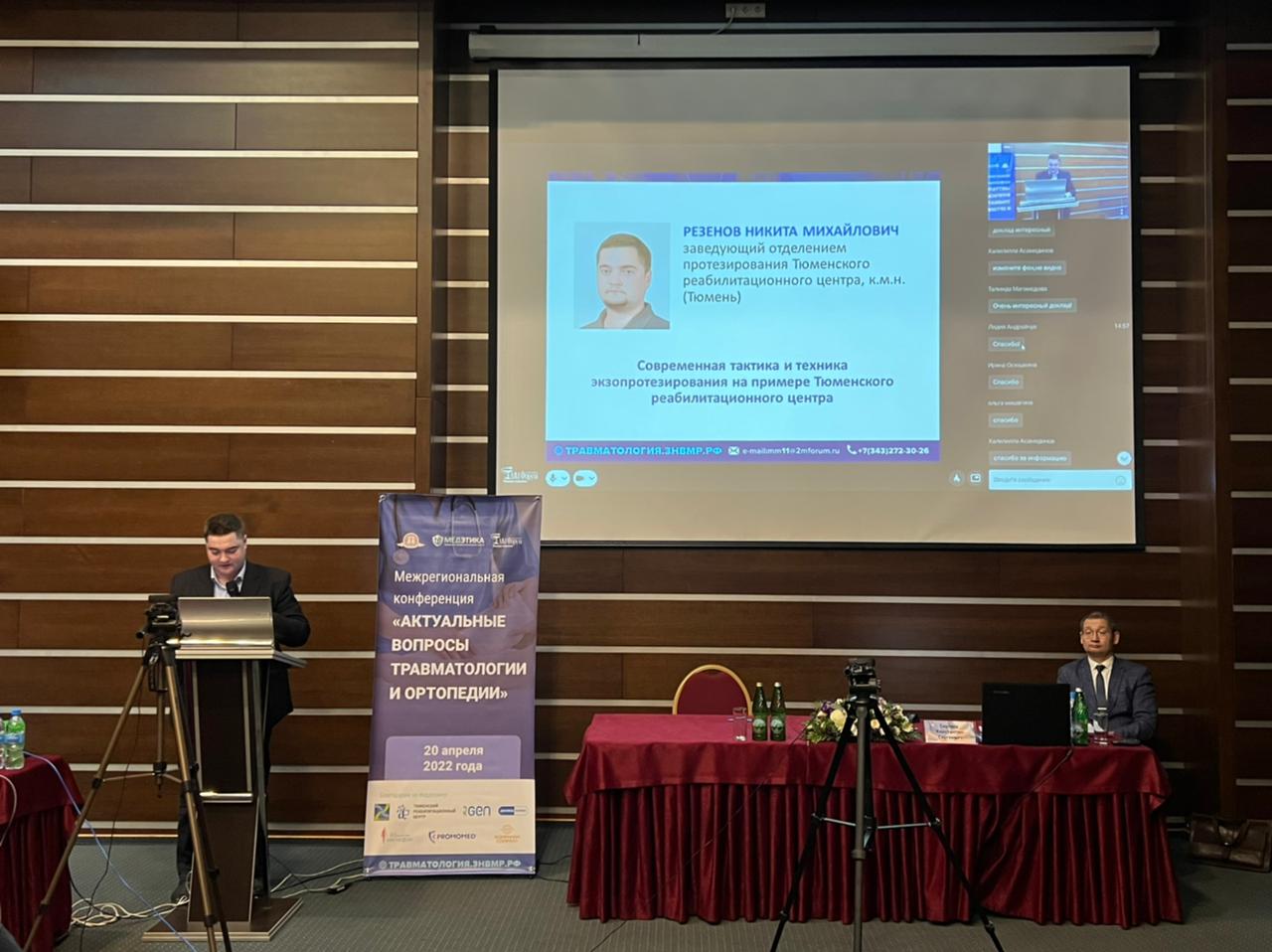 Заведующий отделением протезирования ТРЦ Резенов Никита Михайлович выступил с докладом “Современная тактика и техника экзопротезирования на примере Тюменского реабилитационного центра”.