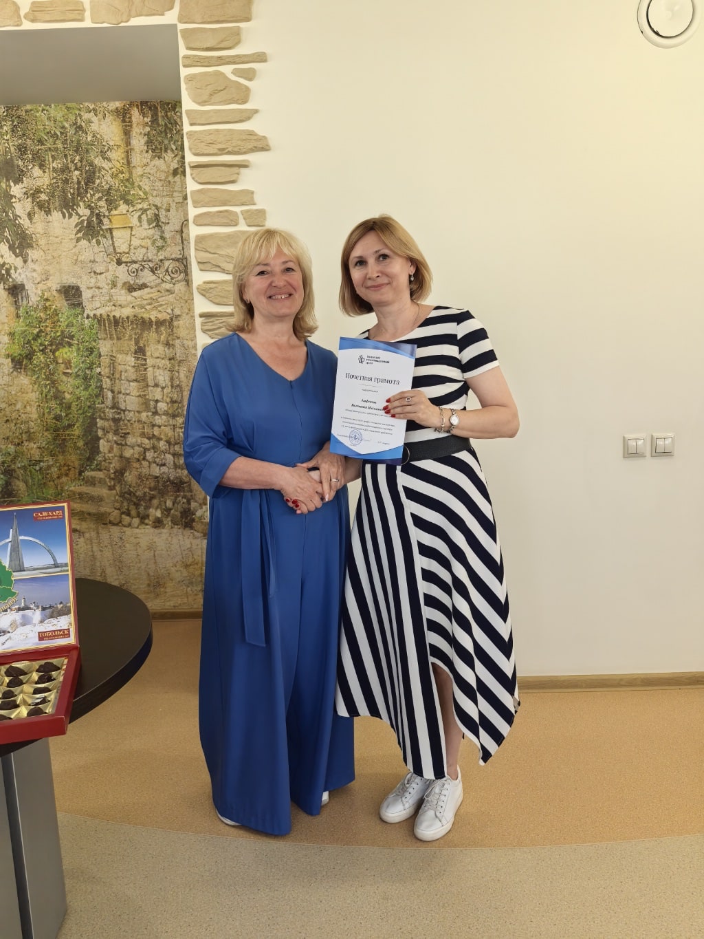 Директор центра Светлана Романовна Аверина сердечно поздравила коллектив с профессиональными праздниками и наградила сотрудников почетными грамотами и благодарностями от Департамента здравоохранения Тюменской области, Департамента социального развития Тюменской области, Тюменской городской думы, председателя Тюменской областной думы, администрации города Тюмени и Тюменского реабилитационного центра за многолетний добросовестный труд, профессиональное мастерство и личный вклад в развитие учреждения.