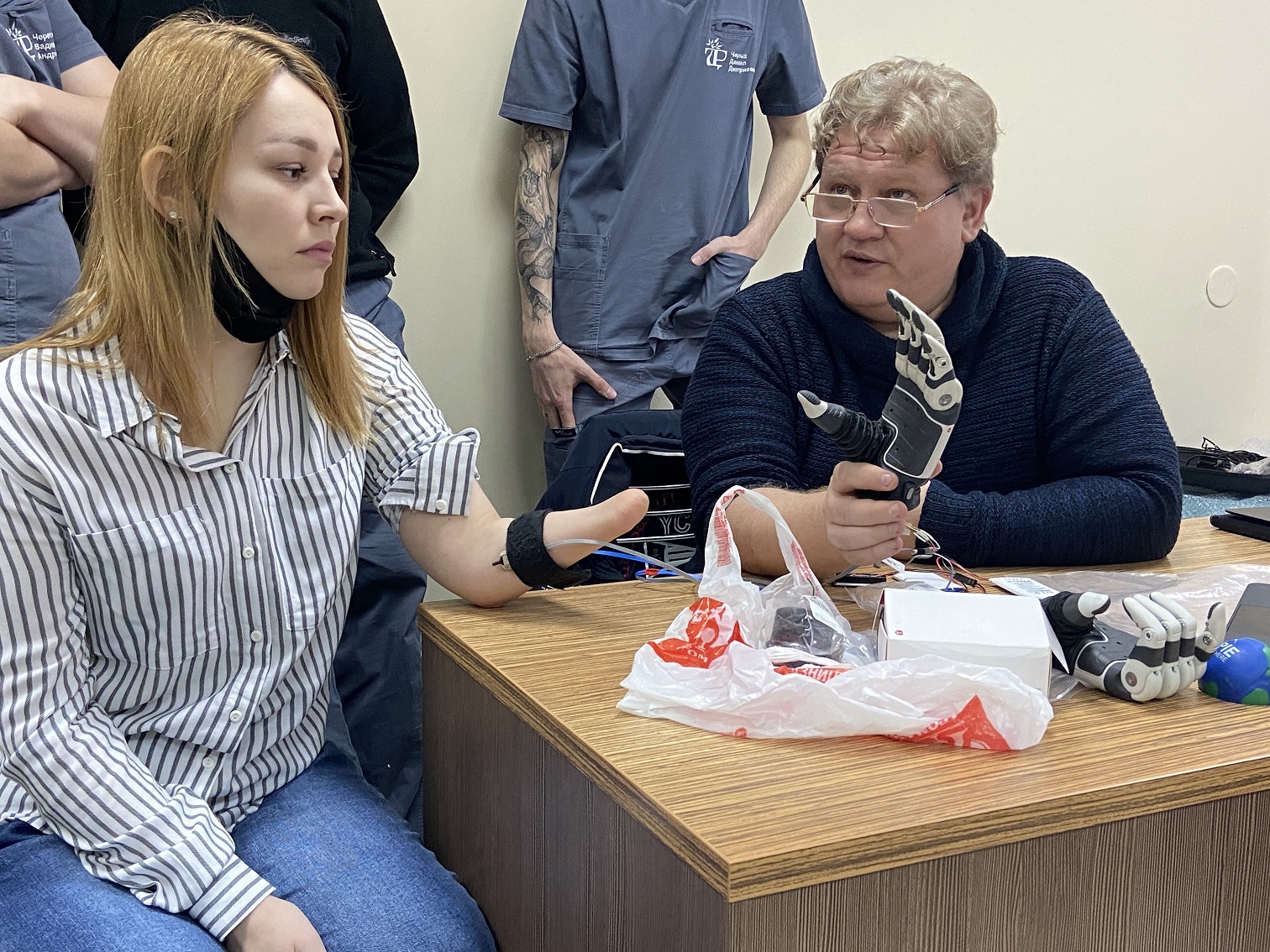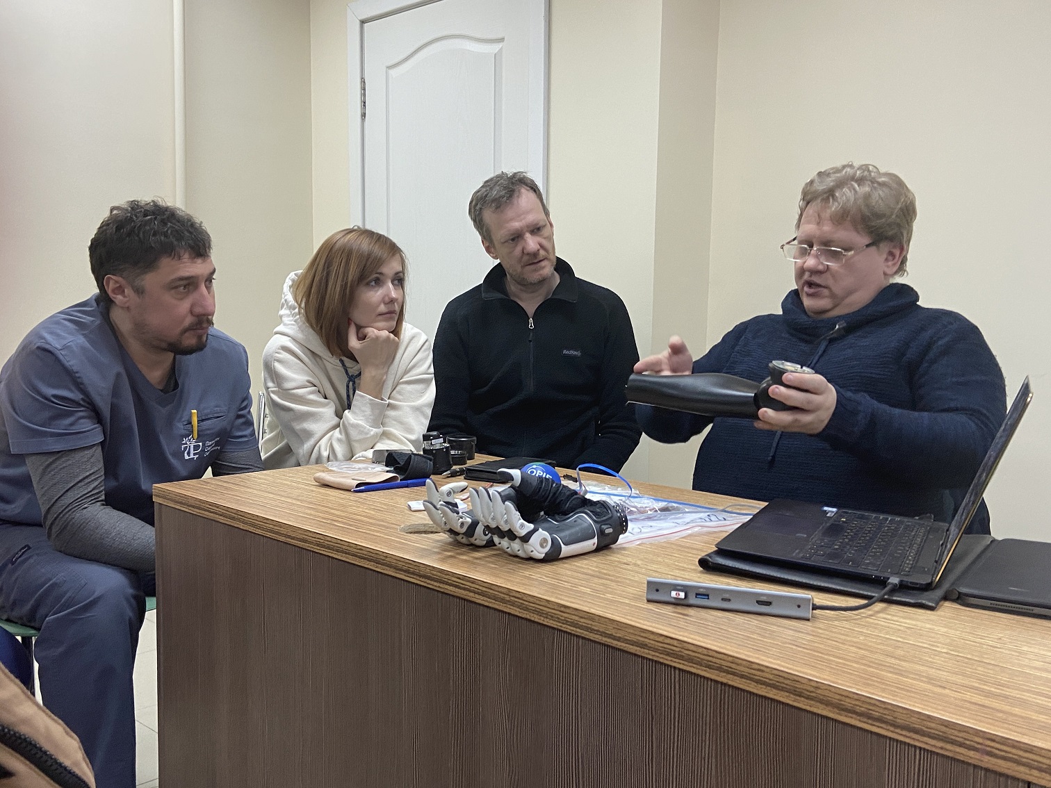 Дмитриев Илья Эдуардович, генеральный директор компании, подробно познакомил наших специалистов с анатомическим локтевым электрошарниром Espire Elbow Pro и многосхватной бионической кистью Taska Hand.